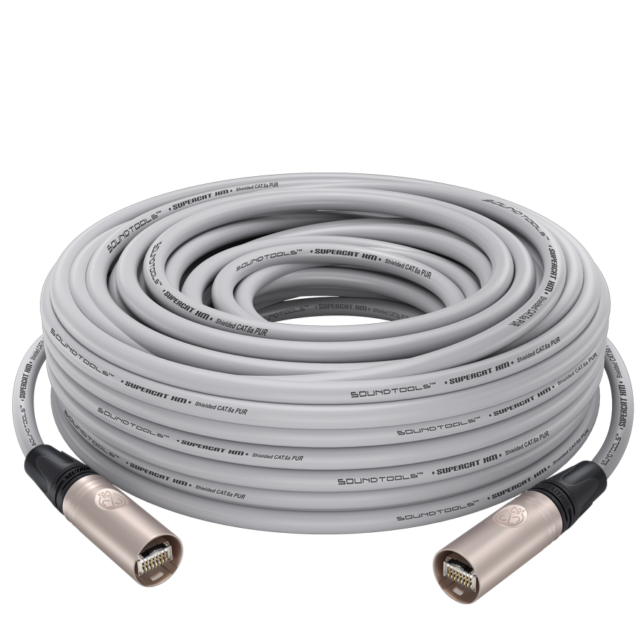 SoundTools SuperCAT XM is our most impressive cable yet, guaranteed to run AES50 without pops or dropouts over lengths up to 110 meters. This cable was designed with Sound Humans in mind, to ensure stable, reliable audio and data (AES3, AES50, Dante, Milan, AVB, MADI and more) over long distances while maintaining flexibility and easy coiling. Take it to 11 with SuperCAT XM!